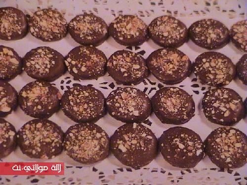 تدهن صفيحة الفرن وتصفف تتهى وتزين بالشكلاط الاسود وترش باللوز او اي فاكهة مجففة مبشورة وتقدم بالف صحة وهناء.