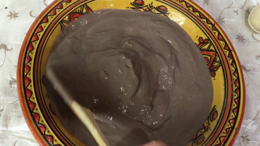 – ضعي طبقة من العجينة على وجهك واتركيه على البشرة لمدة 30-45 دقيقة