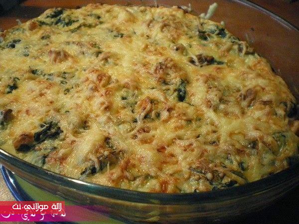 بعد تحضير البيشاميل(في كاسرونة ،ضعي الزبدة وأضيفي الدقيق ثم خلطي وأضيفي الحليب والقليل من الملح وإبزار والقليل من الجوز).