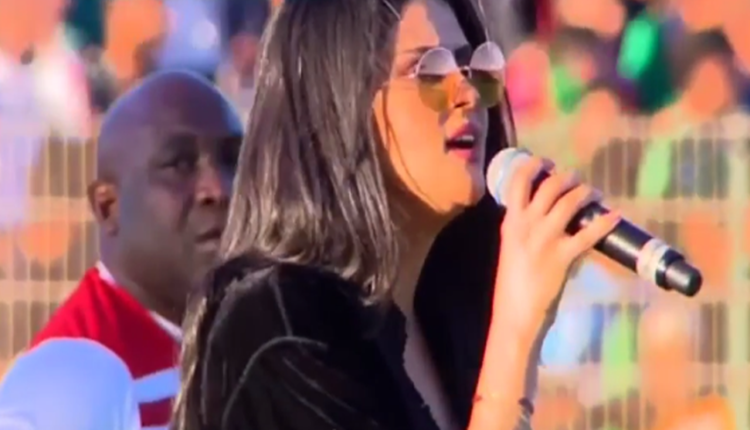 أدت الفنانة المغربية سلمى رشيد النشيد الوطني مساء الثلاثاء خلال افتتاح المباراة الاستعراضية في كرة القدم بمدينة العيون احتفالا بذكرى 43 للمسيرة الخضراء.
