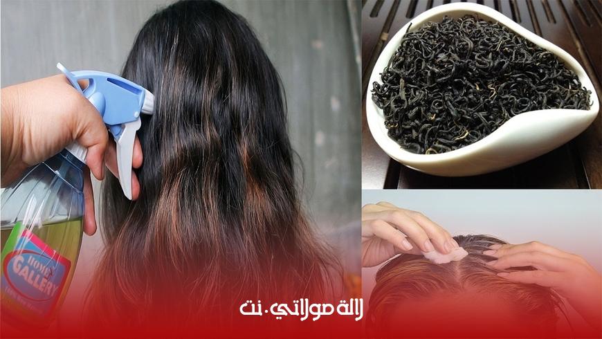 قومي بخلط  جميع المكونات المذكورة في كسرولة وضعيها فوق النار لتغلي  لمدة 4 دقائق ثم ارفعيها من على النار واتركيه حتى يبرد ثم قومي بتصفيته ، ضعي الخليط في بخاخ وعلى شعر نظيف أي ليس به قشرة قومي برشه جيدا من الجذور إلى الأطراف مع تدليك فروة الرأس قليلا ثم وزعيه على كامل شعرك واتركيه لمدة ساعة كاملة اغسلي شعرك بالشامبو الخاص بك وكرري الطريقة 3 مرات بالأسبوع حتى يختفي الشيب تماما .
