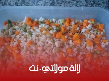 اولا نسلقو القمح والجزر والجلبانة كل على حدة ونصفيوهم ونخلطوهم مع بعض مع الملح والابزار وزيت الزيتون والمايونيز ونحتافظو بيهم جانبا