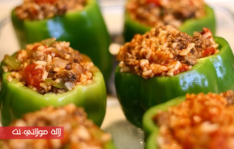 بعدها نحشي الفلفل ونغطيه بشرائح الجبن وندخلها الفرن الى ان تستوي تقريبا 40 دقيقة في الفرن