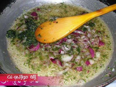 ونظيفو ليها 1ملعقة الزبدة وقليل معدنوس 1 بيضة مضربة