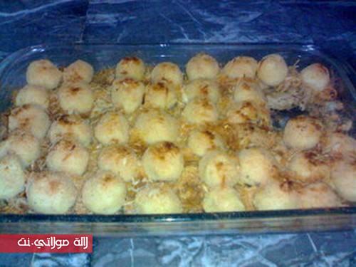 نعملها على شكل كويرات ونضعها فوق شرائح الديك الرومي و البصل كما هو موضح في الصورة