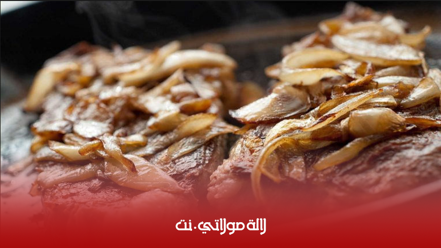 عندما ينضج الستيك من الجهة الاولى ويتحمر نقلبه للجهة التانية، وعندما ينضج نضعه في طنجرة البصل والزبيب ونرشهم بالقزبر والبقدونس المفرومين جيدا ونترك الكل على النار حتى يسخن ثم نضعه في طبق التقديم.