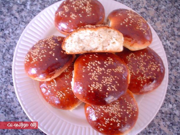 في اناء نضع الدقيق + خميرة +زنجلان + النافع + ملح + سكر + بيضة + زبدة و الحليب نخلط الكل حتى نحصل على عجين رطبة و متماسكة,بعد ذلك نشكل كورات متوسطة الحجم نضعهم في صينية الفرن نتركهم لمدة ساعة ندهن الوجه بالبيض و نرش شوية من زنجلان و ندخلهم للفرن مسخن مسبقا لييأخدوا اللون المحمر