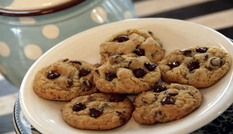 تضاف حبيبات الشكولاتة ويقلبو بشكل جيد ، تقسم العجينة إلى كرات صغيرة وتوضع في صينية الفرن