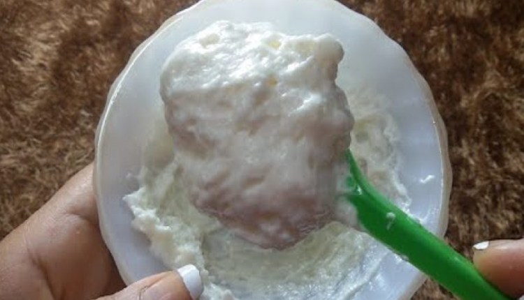 ضعي بياض البيض في وعاء ثم ضيفي الياغورت والنشا والحليب بودرة من بعد لمزجي جيدا وضعيه على وجهك لمدة 10 دقائق من بعد اغسلي بالماء الفاتر