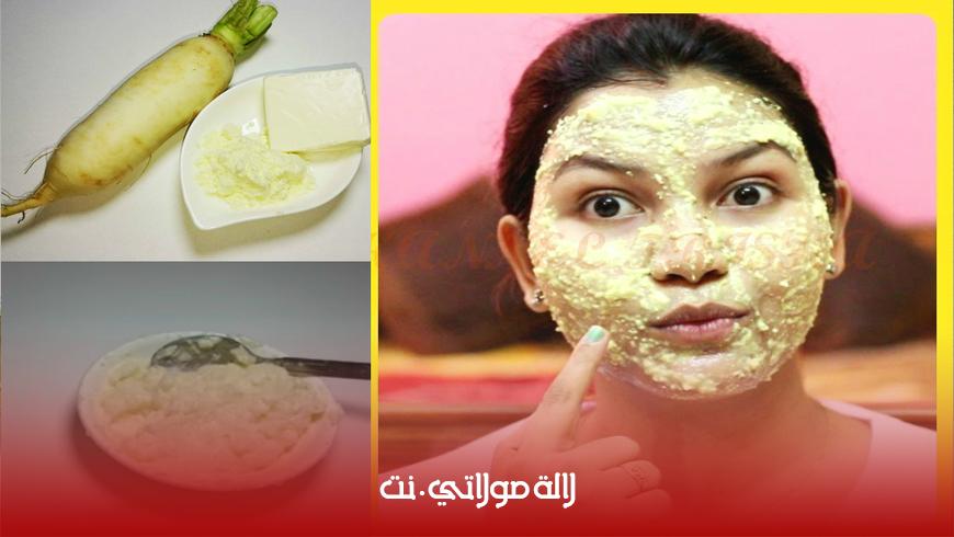 اطحني اللفت وخذي عصارتها واخلطيها مع باقي العناصر جيدا ثم طبقي الخليط على بشرتك واتركيه 15 دقيقة بعدها اشطفي بالماء البارد وادهني بشرتك بكريم مرطب كرري الوصفة كل يوم لمدة 10 أيام وسترين أن بشرتك ستصبح كالقمر.