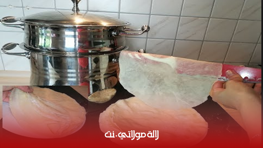 كنجمع العجين نخليها صلبة دون دلك ثم خليهل لمدة 20 دقيقة ترتاح من بعد قطعيها كرات صغيرة على حساب حجم الكسكاس دلكي الكرة بالنشا والمدلك ثم ادهنيها بالزيت ورشي النشا وضعي عليها الأخرى عليها وضعي الكل كل وحدة على الاخرى لطبقات ثم بسطيها بالمدلك خودي الكسكاس دهنيها جيدا بزيت ووضعيها داخل الكسكاس ووضعيه في البرمة على طريقة الكسكس وغطيها وخليها طيب على مدة 8دقائق فقط وحيدها وبالصحة والراحة