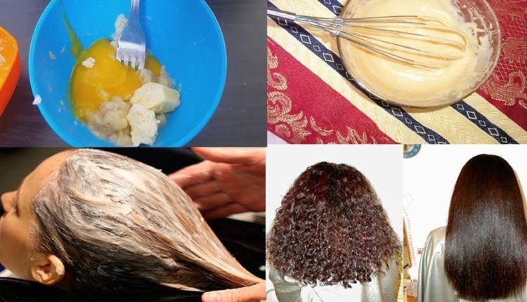 تمزج جميع المكونات معا للحصول على معجون. يطبق المعجون على الشعر المرطب بالماء، من الجذور إلى الأطراف. ثم توضع قبعة الاستحمام لمدة ساعة على الأقل. بعد ذلك يغسل الشعر بالشامبو والماء الفاتر. يستخدم هذا العلاج مرة أو مرتين في الأسبوع للحصول على نتيجة فعالة.