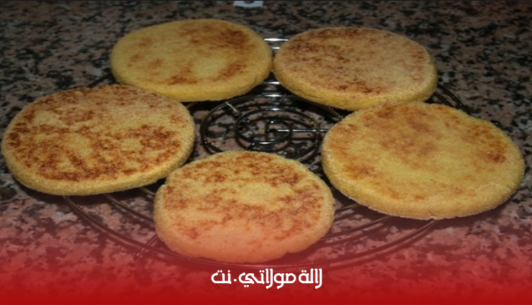 في اناء نضع السميدة ثم نضيف لها خليط الزبدة والزيت ونخلط بواسطة ملعقة