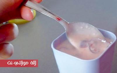 < في وعاء عميق، يوضع الرايب ويضاف البسكويت المقطع والعسل ويقلب جيدا.