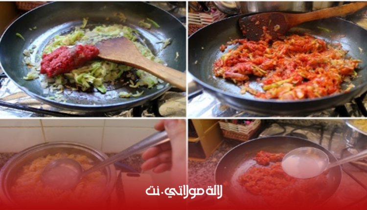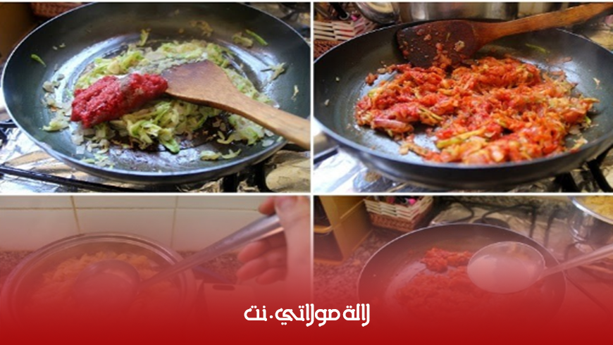 اولا نديرو الماء يطيب مع شوية الملح ونردو لي باط يتسلقوو ، وندوزو نوجد مقلاة نديرو زيت يسخن ونضيفو ليه بصلة مشلضة رقية ورشيشة ملح ونخليوها تنزل مزيااان ، منين تنزل نزيدو ثوم وكورجييت محكوك منين تنزل الكورجيت تنزيدو مطيشة الحك ونشحرو شوية حتا تطلع ريحة مطيشة عاد ، نبدا نضيف الماء من الاحسن الماء فاش صلقنا لي باط مع تيكون طالق فيه داك نشا تتعقاد لينا لاصووص