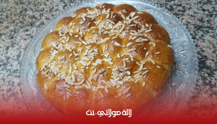 ونترك الصينية في مكان دافئ حتى تختمر حوالي ساعة ونصف حسب درجة الحرارة المهم حتى يتضاعف حجمها ونذهنها بالبيض وتخبز في فرن ساخن ( في الاول نقوم باشعال الفرن من تحت والصينية توضع في وسط الفرن كي لاتحترق ولا نفتح عليها الفرن لمدة ربع ساعة تقريبا ونطفئ الجهة السفلى ونقوم باشعال الفرن من فوق ولاننساها لانها بسرعة تتحمر ممكن تأخد 4 دقائق ونخرجها من الفرن ونتركها تبرد