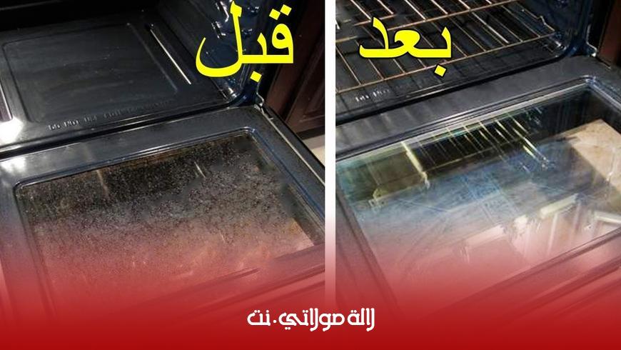 سخني الفرن على درجة مئة وخمسين لمدة ربع ساعة ثم أغلقيه وقومي أيضاً بإغلاق أنبوبة الغاز أيضاً زيادةً في الحرص، ثم قومي بخل كمية قليلة من بيكربونات الصودا في الماء الدافئ ورشي بها باب الفرن ثم اتركيه ربع إلى وبعدها مرري ليفة غسل الأواني لتري أن النتيجة هائلة وباب الفرن أصبح نظيفا نظافة مثالية وكانه جديد.