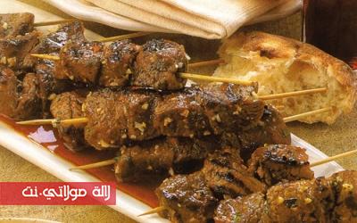 < كيلو من مكعبات اللحم < 3 فصوص ثوم مفرومة < ملعقة كبيرة من البقدونس المفروم < ملعقتان كبيرتان عصير الحامض < نصف ملعقة صغيرة إبزار أسود < صلصة < ملعقتان صغيرتان تحميرة < قبصة من مسحوق الفلفل الحار < نصف ملعقة صغيرة ملح < ملعقتان كبيرتان خل < ملعقتان كبيرتان زيت زيتون < 12 قضيبا خشبيا طريقة التحضير : < اغمري قضبان الخشب في الماء لمدة ساعة زمنية حتى لا تحترق أثناء الشواء. اخلطي مكعبات اللحم مع الثوم والبقدونس وعصير الحامض والإبزار في إناء وغطيها بورق شفاف صحي وضعيها في الثلاجة لمدة ساعتين. جهزي الصلصة بمزج التحميرة ومسحوق الفلفل الحار والملح والخل والزيت عن طريق الخفق. سخني الفرن على درجة الشواء أو أعدي طريقة الشواء التقليدية. أخرجي الإناء من الثلاجة صففي مكعبات اللحم في القضبان الخشبية. حين تشوى صففيها في طبق واسقيها بالصلصة وقدميها مرفقة بشرائح الحامض.
