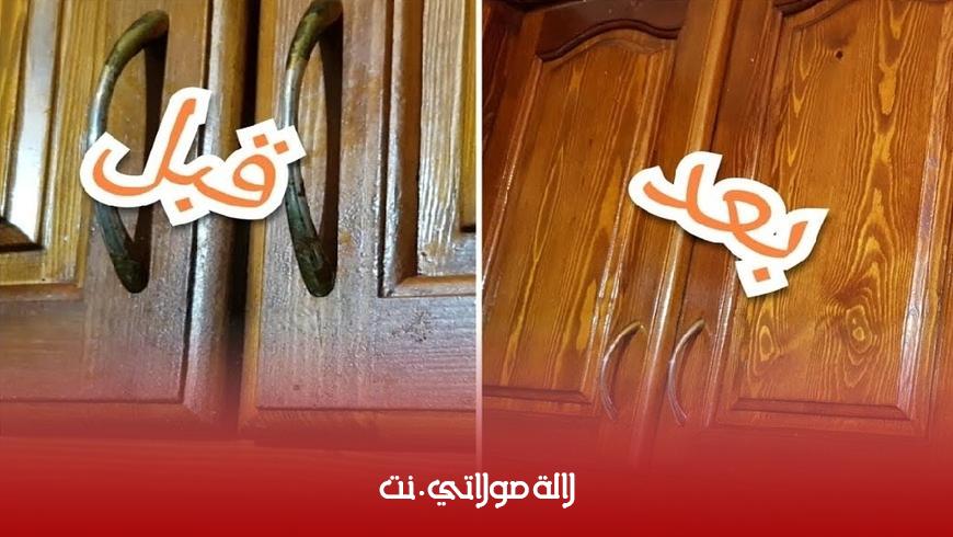 لكن مع حلول مجلة لالة مولاتي لا يمكنك سيدتي أن تنزعجي فهنا نقدم لك الحل الذي يجعلها وكأنها جديدة دون الحاجة إلى صبغها أو تجديدها مرة أخرى، فقط قومي بجمع بقايا الشاي بعد تناوله يفضل أن تفرزي النعناع عن الحبوب إلى أن تحصلي على كمية كافية للخزائن بعدها اطحني تلك الحبوب في الخلاط الكهربائي وخذيها ومرريها على الخزائن واتركيها عليها ليلة كاملة في الصباح امسحي باستعمال القليل من الزيت في منشفة وسترين كيف ستصبح نظيفة ولامعة.