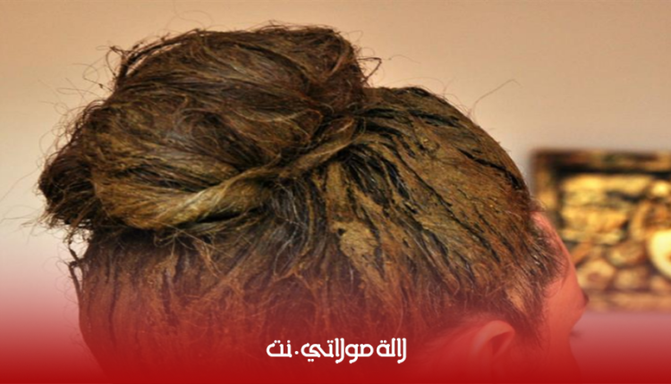 10 ملاعق كبير من الحناء.+عصير ليمونة كاملة.+3 ملاعق صغيرة من خل التفاح.+3 ملاعق من قشور الباذنجان المغلية.