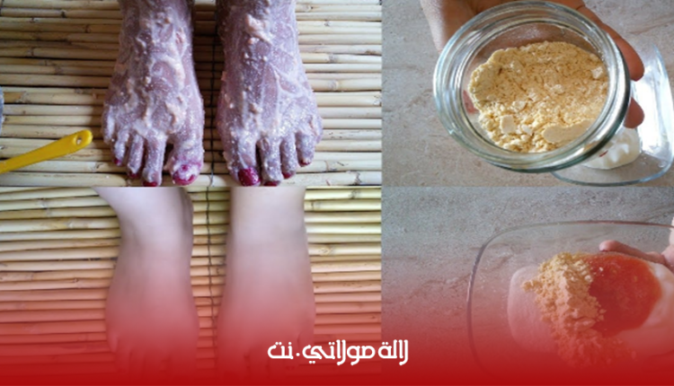 خوذي القليل من كل مكون دهني رجليك بهم وغلفيهم بسولوفان بلاستيكي ولبسي تقاشر