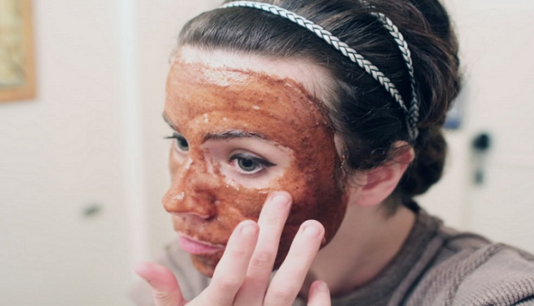في وعاء أمزج كلا من السكر والكاكاو أضف زيت جوز الهند واللوز إلى المكونات السابقة، ثم يقلب جيدًا حتى يصبح المقشر متجانس و رطب
