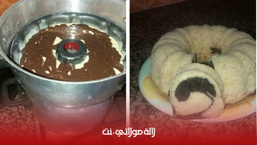 - نقسمو الخليط واحد نضيفو ليه 2معالق تاع الكاكاو وناخدو المول نضيف الخليط البيض هوالاول ونضيف الخليط تاني لبكاكاو