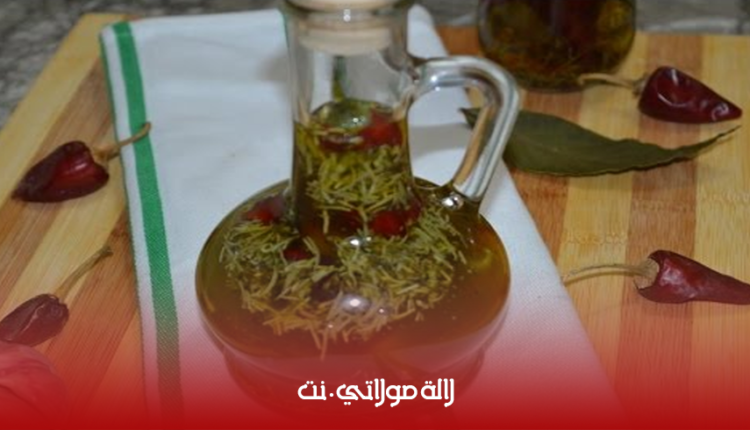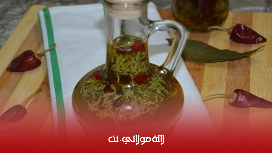 في قنينة زجاجية نضع الثوم وورقة سيدنا موسى ونصب عليهما زيت الزيتون