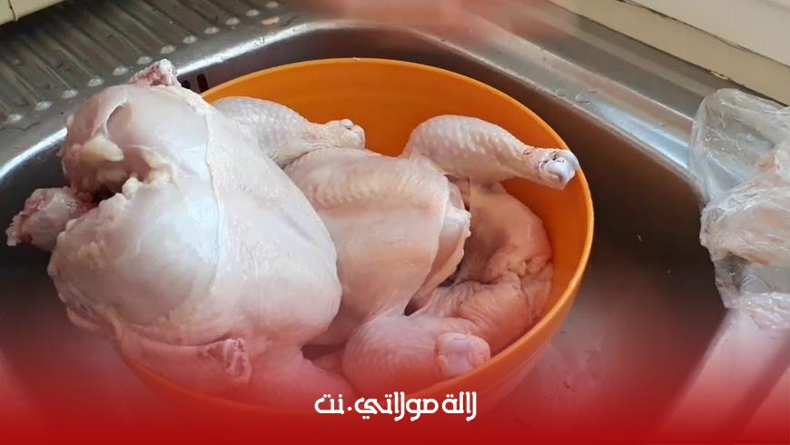 يمكنك سيدتي أن تقومي بتقطيع الدجاج إلى قطع صغيرة ثم ضعي عليك عصير حبتين من الطماطم وافركي جيدا قطع الدجاج بهذا العصير مع القليل من الملح وعصير الليمون الذي يساعد على إزالة الرائحة الكريهة التي تكون في الدجاج، كما أن عصير الطماطم يساهم بشكل كبير تسهيل عملية إزالة الجلد والشحوم وغيرها من الشوائب بعدها أزيلي الدجاج من ذلك الخليط واشطفي بالماء ثم انقعيه في الخل مع عصير الليمون والقليل من الفلفل الأسود وعصير حبة أخرى من الطماطم دون استعمال الماء واتركيه في الخليط إلى حين طهيه.