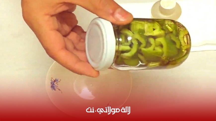 المكونات : كمية من الفلفل الأخضر + كمية من قشر البصل +فصين من الثوم + كمية من السمسم+ زيت الزيتون