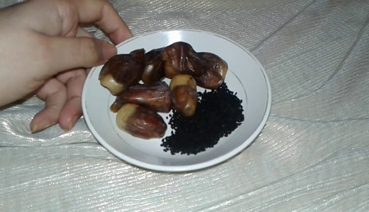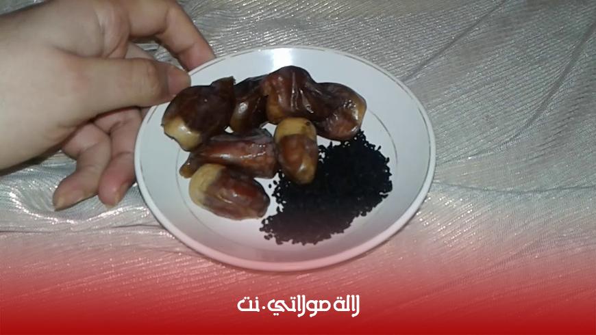 المكونات : حبات من التمر + كمية من الحبة السوداء