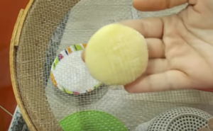 كنخلطو المكونات كلها وكنجمعوها بالدقيق، وكنبداو نكورو العجين ونفندو فالسنيدة ونطبعوه فبوسيار اولا الشبكة كما هو مبين فالصورة أسفل