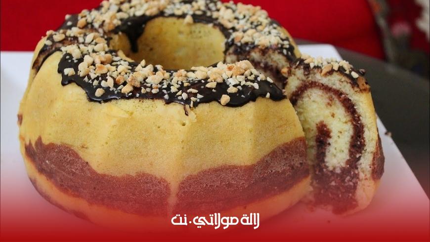 المكونات : 3 بيضات حجم كبير او 4صغار+ علبة ياغورت فانيلا 110غ + علبة زيت +ملعقتين زبدة مذابة +علبة ونصف سكر +علبة ماء مبشور حامض +كيس فانيلا + كيسين خميرة الحلويات =16غ + القليل من الملح + دقيق ابيض + كيس كاكاو.
