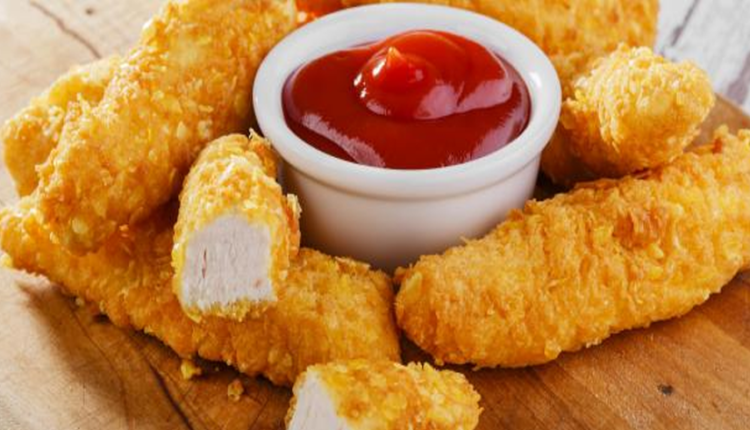 ندق صدور الدجاج بين ورقتين من ورق و نغمسها في الدقيق ثم البيض و اخيرا في الخبز المطحون.