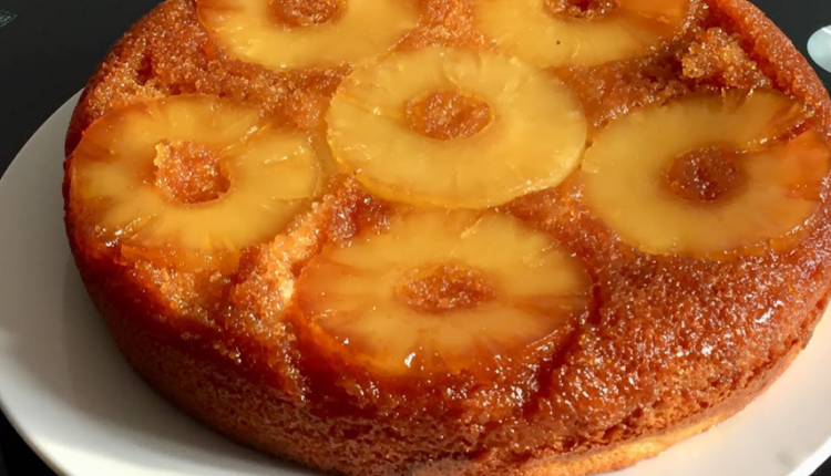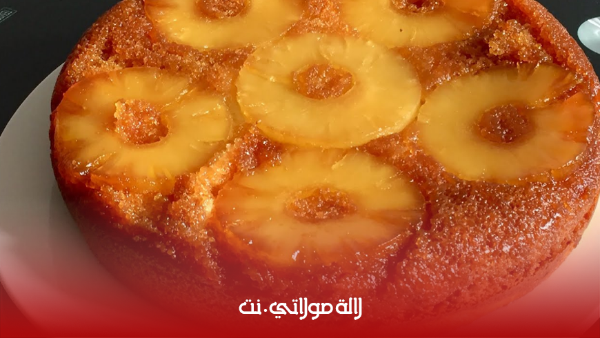 - وزعي عصير الأناناس فوق الكيك و هو دافئ وقدمي الكيك دافئ أو بارد حسب الرغبة.