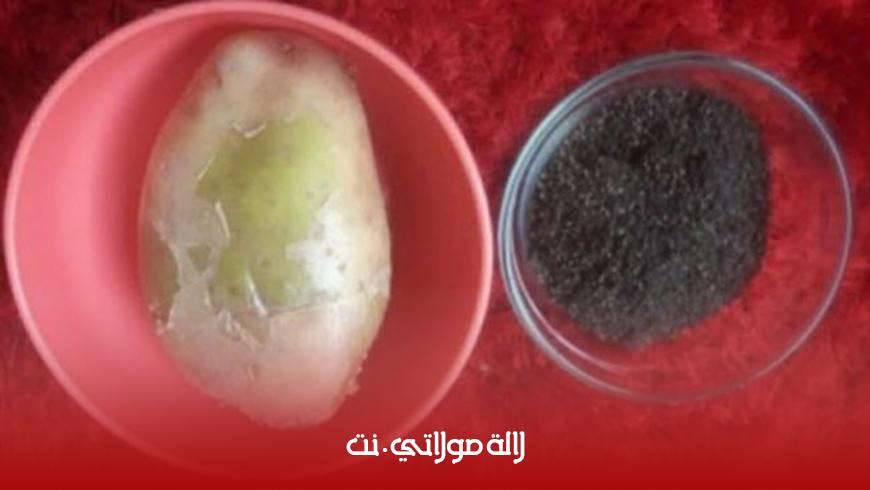 المكونات : حبة بطاطس مقشرة ومطحونة + ملعقتين من العسل الطبعي + ملعقتين القطران الشاي الأسود
