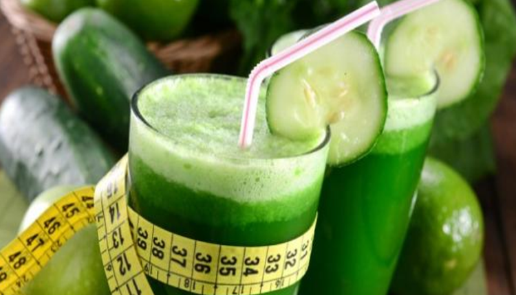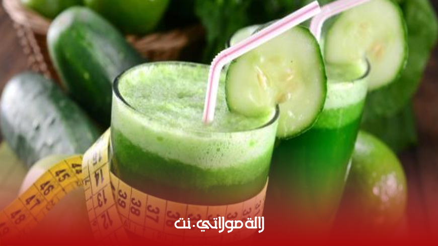 المُكوِّنات: حبتان من الخيار مقطَّعتان إلى شرائح و3 حبات من الكرفس المفروم وثمرة من التفاح الأخضر المقطع وكوب من الماء.