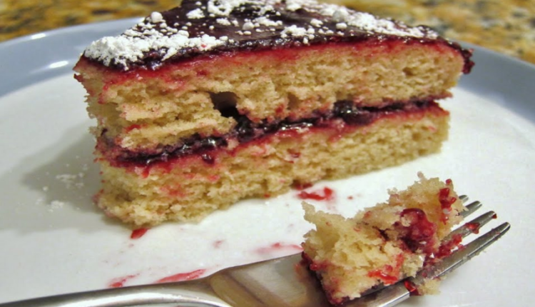 - اتركي الكيك ليبرد ثم قبل التقديم زيني بالقليل من مربى التوت الأرزق وقطعيه.
