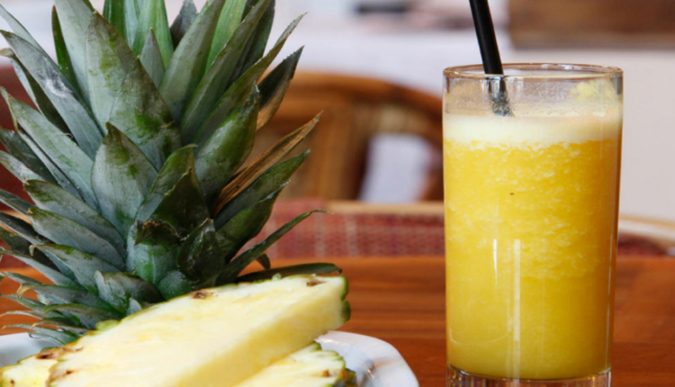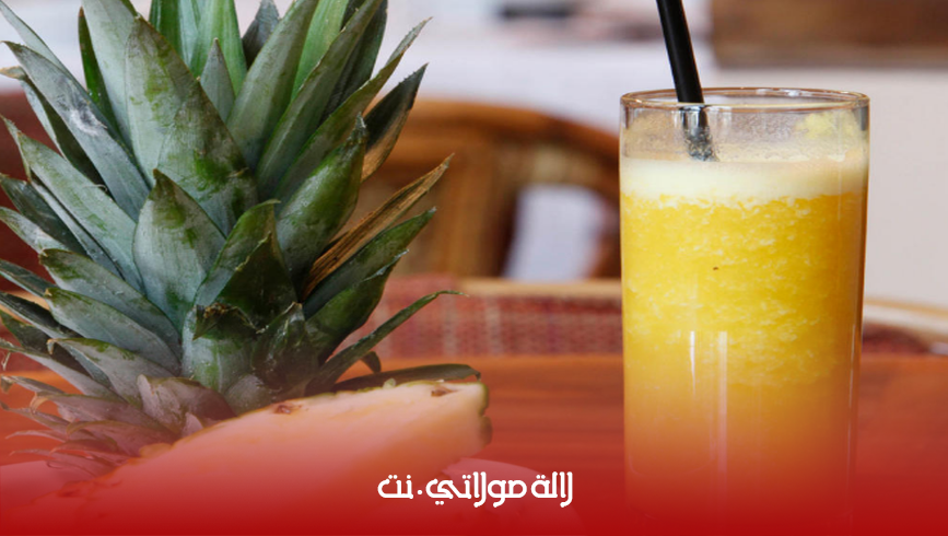 • يقشر الأناناس، ويقطع ما بداخله إلى مكعبات صغيرة حتى يسهل خلطها.