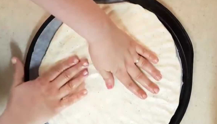 - نتابع العجن حتى تتكون لدينا عجينة ناعمة، ثم نغلف الوعاء بورق البلاستيك ثم نضعها في مكان دافئ لمدة ساعة حتى تختمر ويتضاعف حجمها.