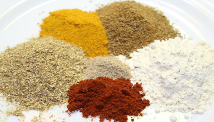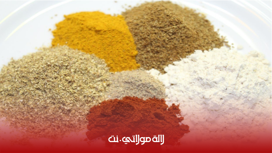 نضع جميع البهارات في المطحنة الكهربائية ونشغلها حتى تختلط جميع التوابل جيداً .