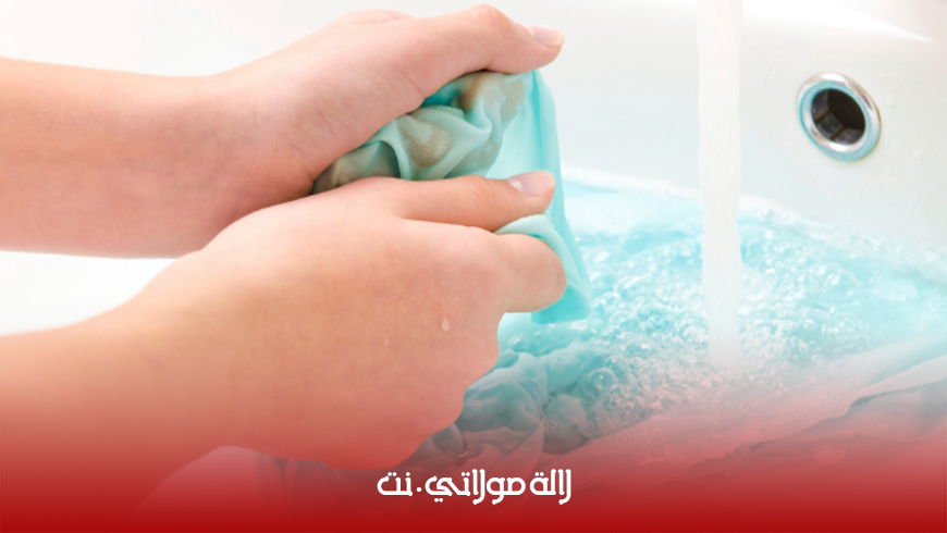 • ادعكي مكان البقع و إذا كانت الملابس داخلية، ينصح بغليها لضمان نظافتها بالكامل.