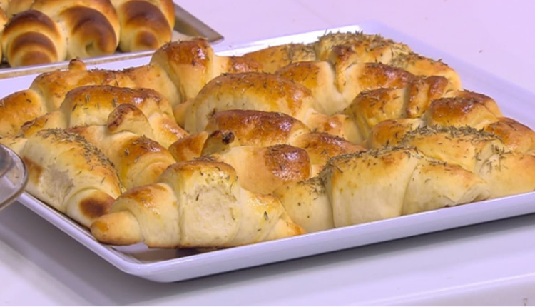 نخبز لمدة 15 دقيقة في الفرن المسخن مسبقاً للدرجة 190 مئوية حتى تأخذ الكرواسون لوناً ذهبياً بنياً جميلاً، نرش على وجهها السمسم ثم نقدمها.