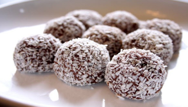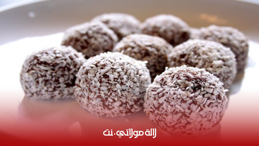 • اعملي من الخليط كرات دائرية ورشي جوز الهند.