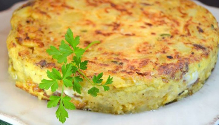 4. اخفقي البيض مع فلفل وملح وأضيفي الخليط للمقلاة فوق البطاطس والبصل حتى ينضج البيض.
