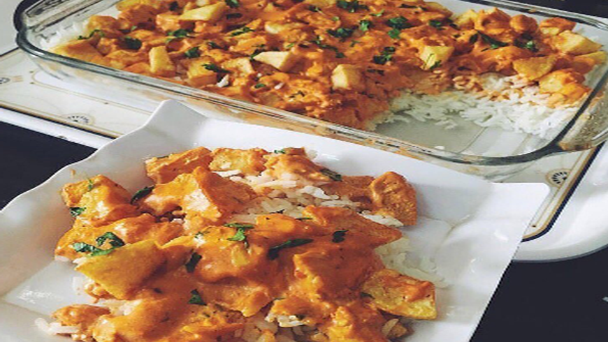 8. قدمي صينية الدجاج بالأرز ساخنة.