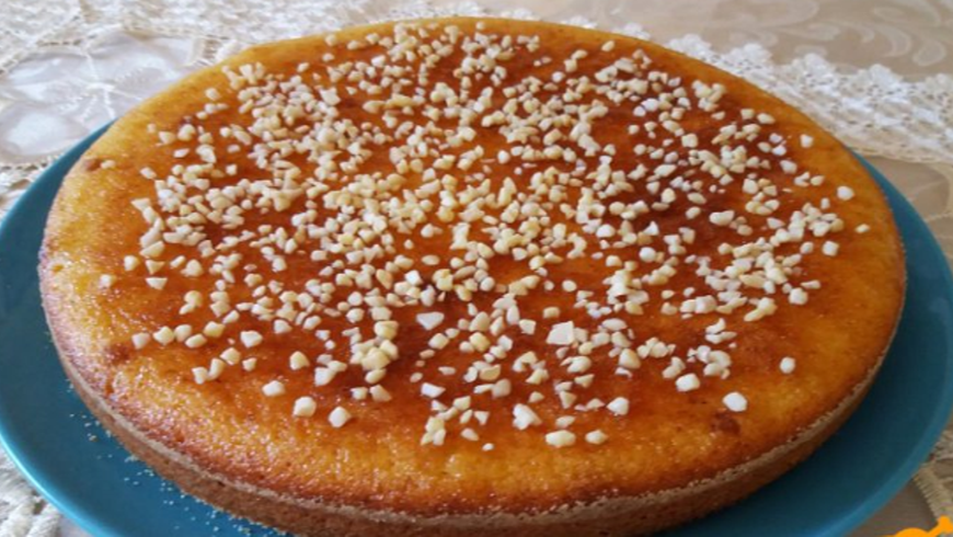 نصب الخليط في إناء ثم نضيف السميدة و خميرة الحلوى مع الخلط الجيد الى أن تتجانس المكونات و نتركه دقيقتين