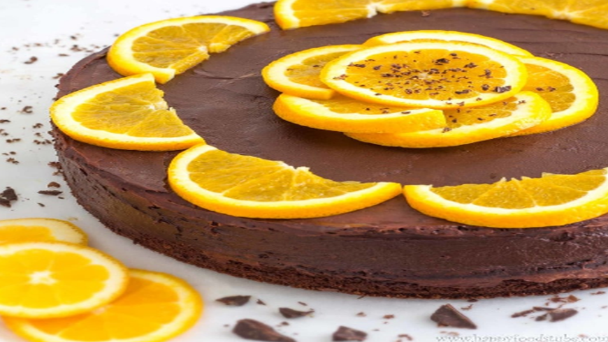 15. اسكبي التغليفة على وجه الكيك وزيّني بقشور البرتقال.
