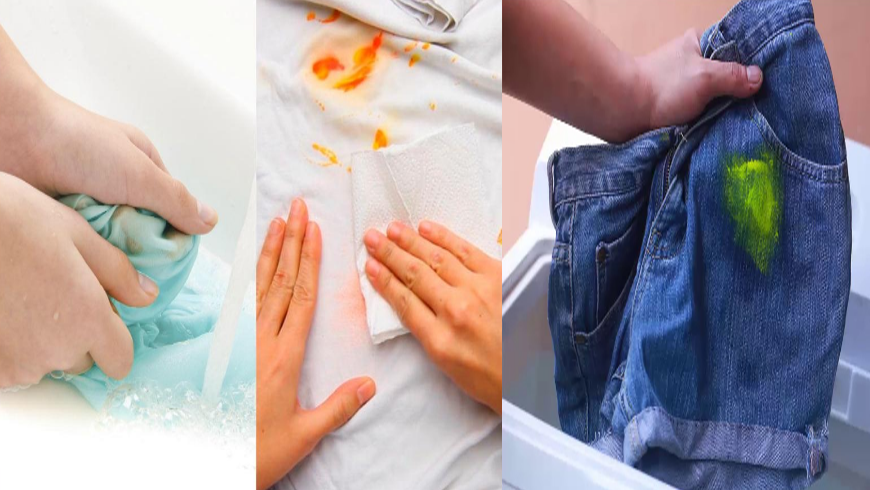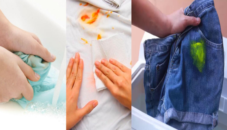 • ضعي منشفة ورقية تحت قطعة الملابس المتسخة.