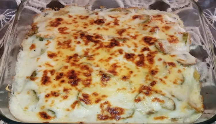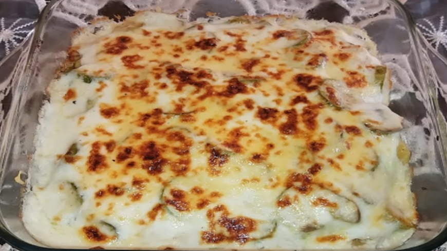 نضيف طبقة القرع الأخضر ثم نصب صلصة الياغورت